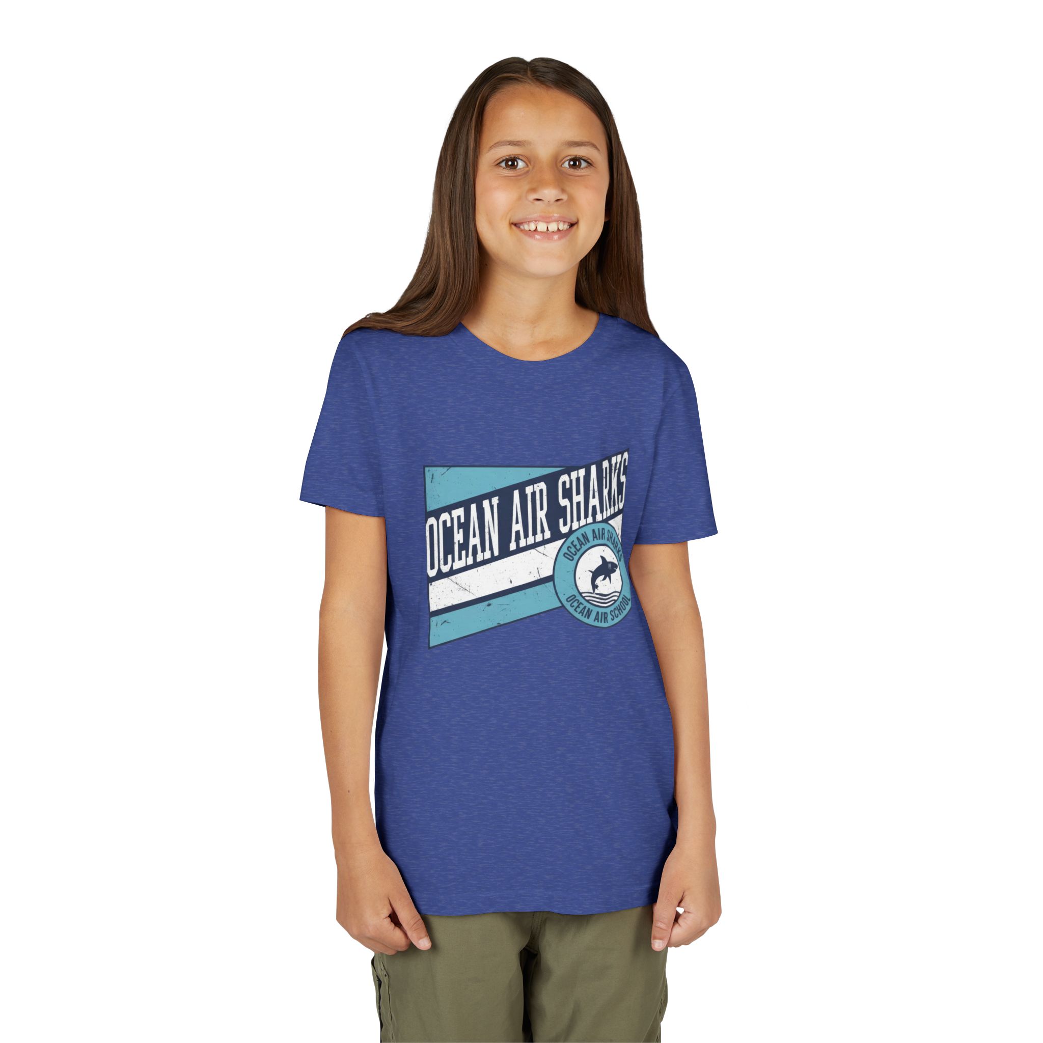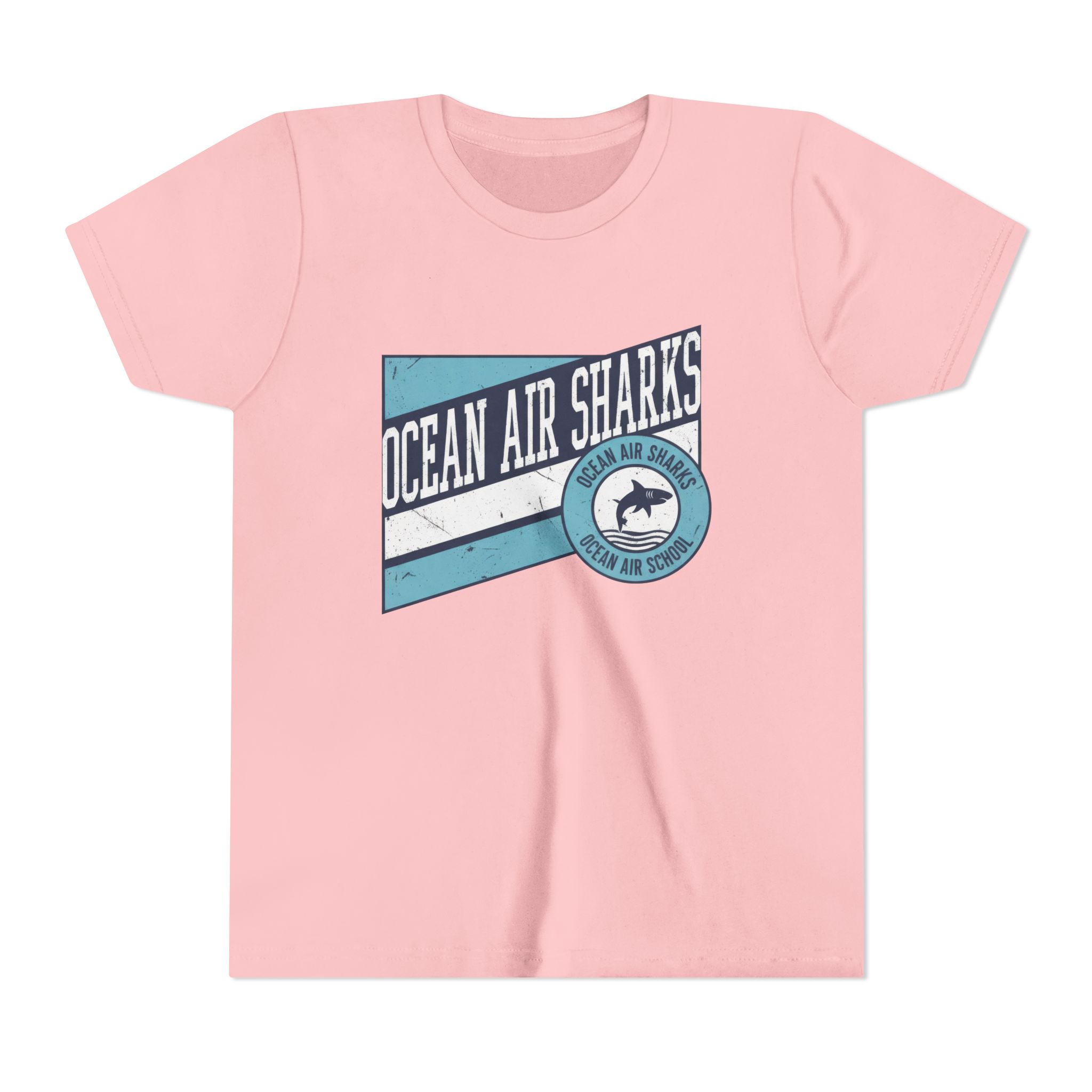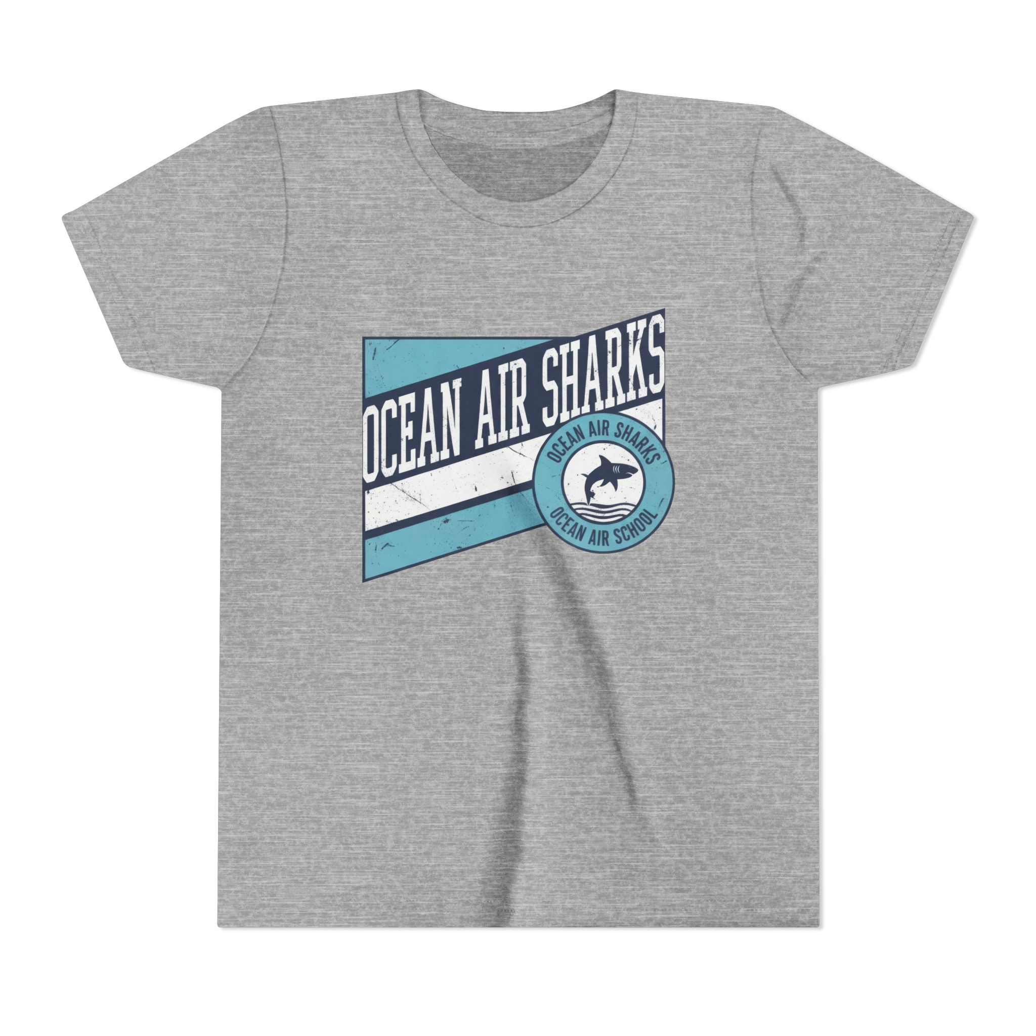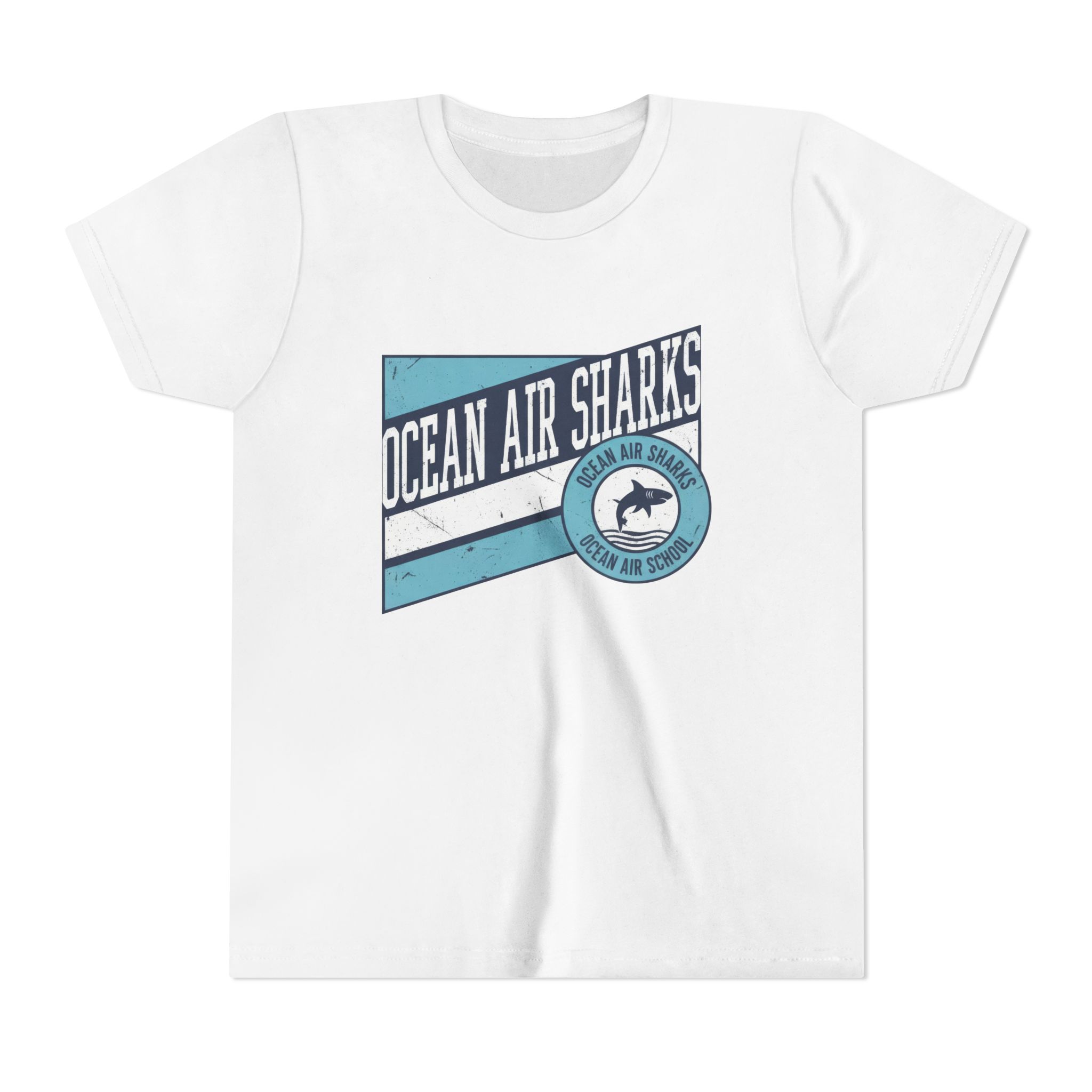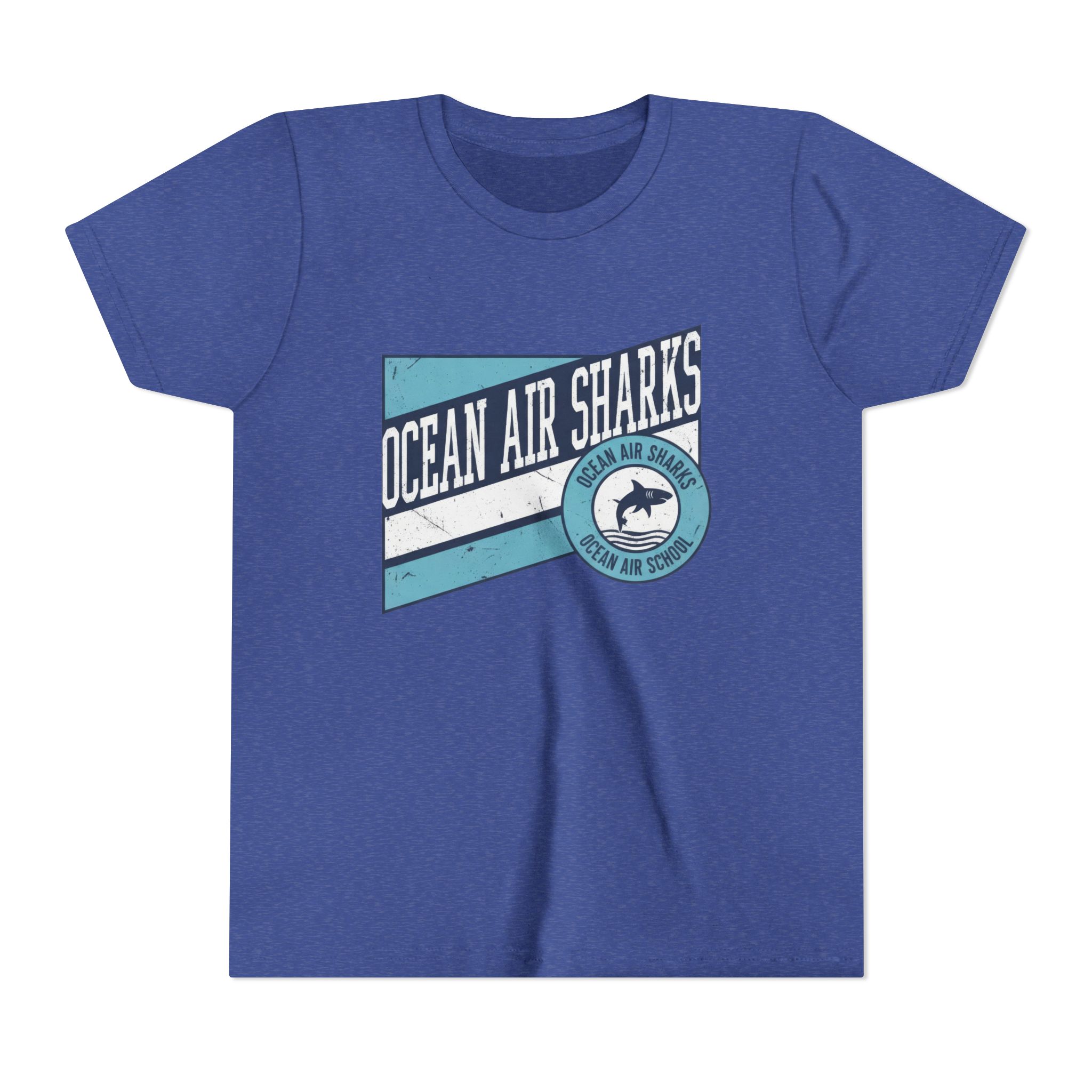 Bring bold school pride and everyday comfort together with the Ocean Air Sharks Retro Banner Tee! Featuring a vintage-inspired design with our iconic shark emblem and team colors, this tee captures the fun, spirited energy of Ocean Air School.