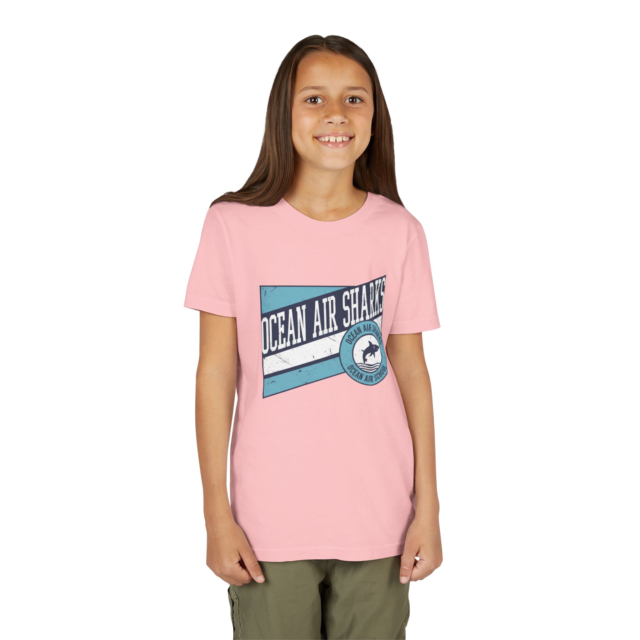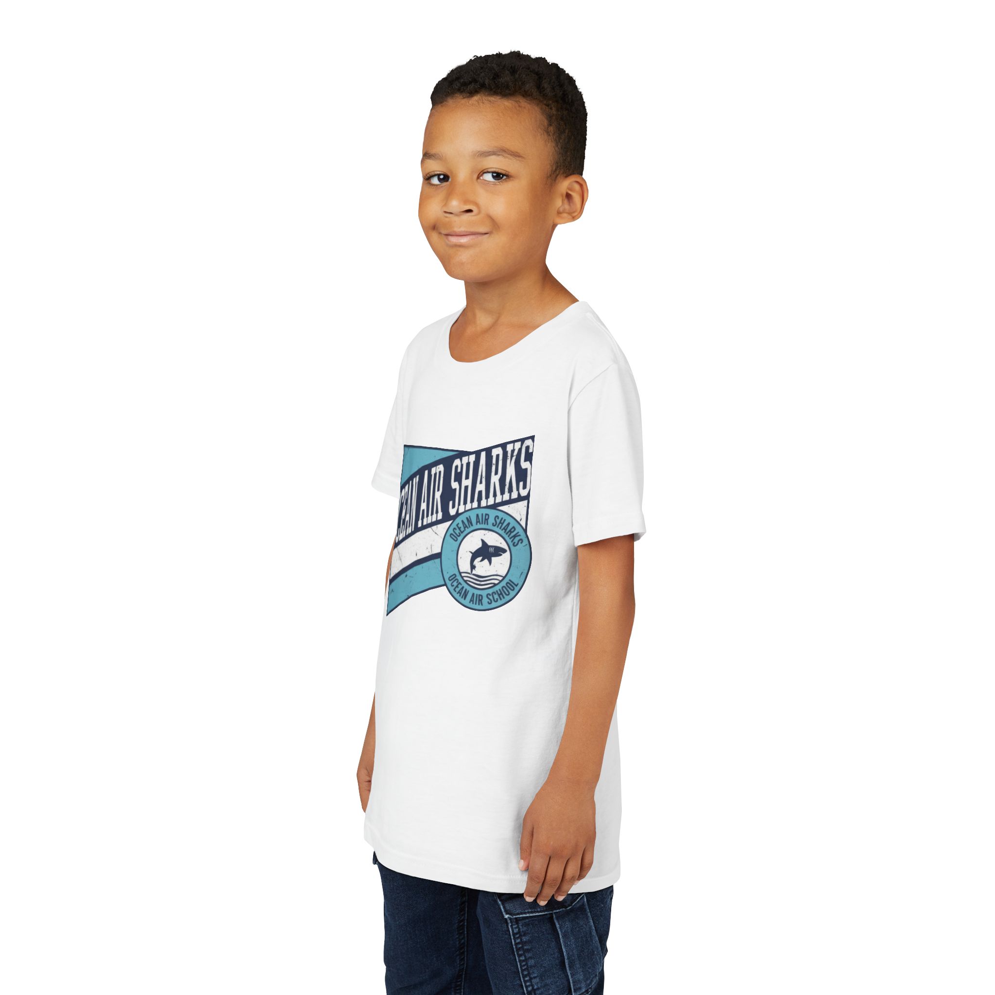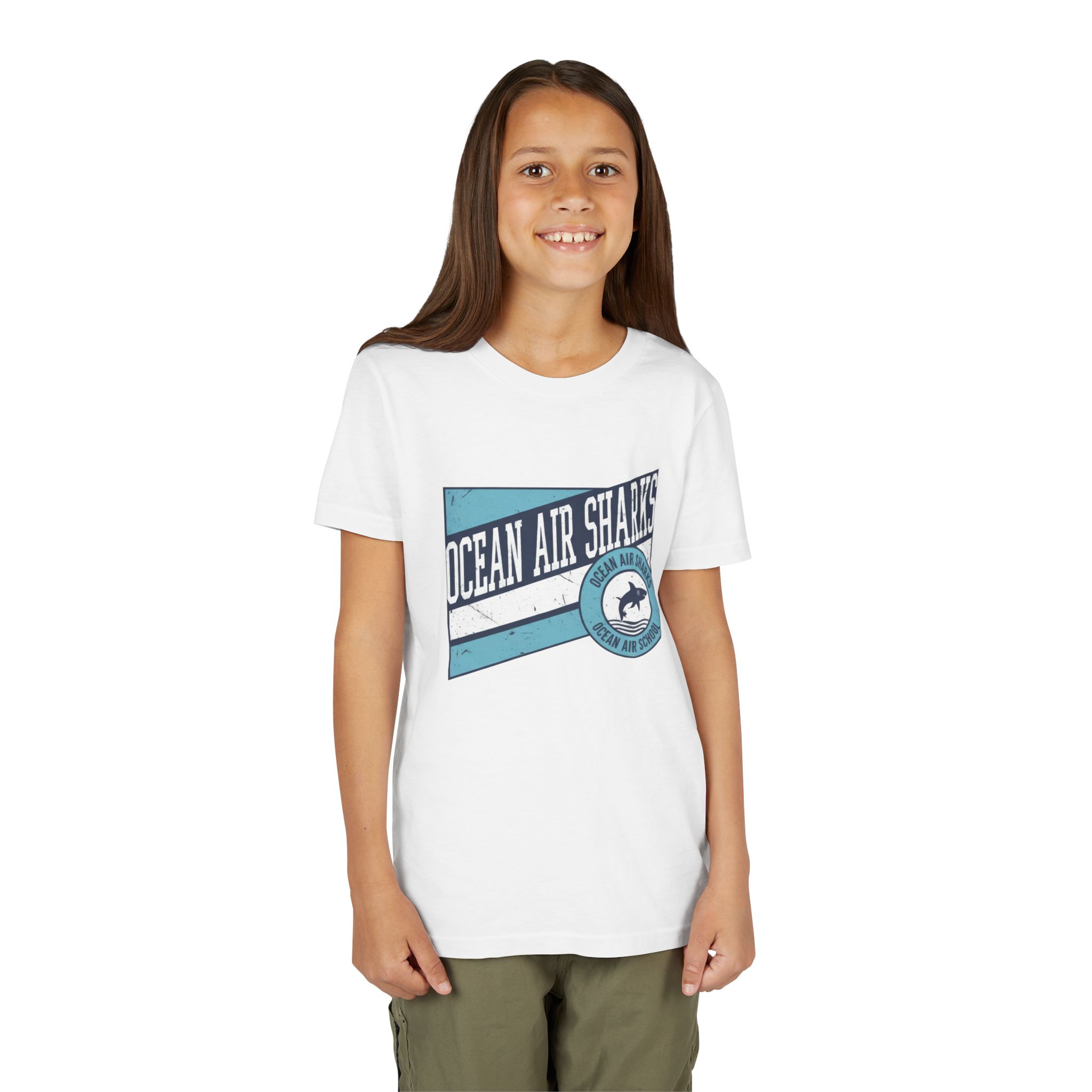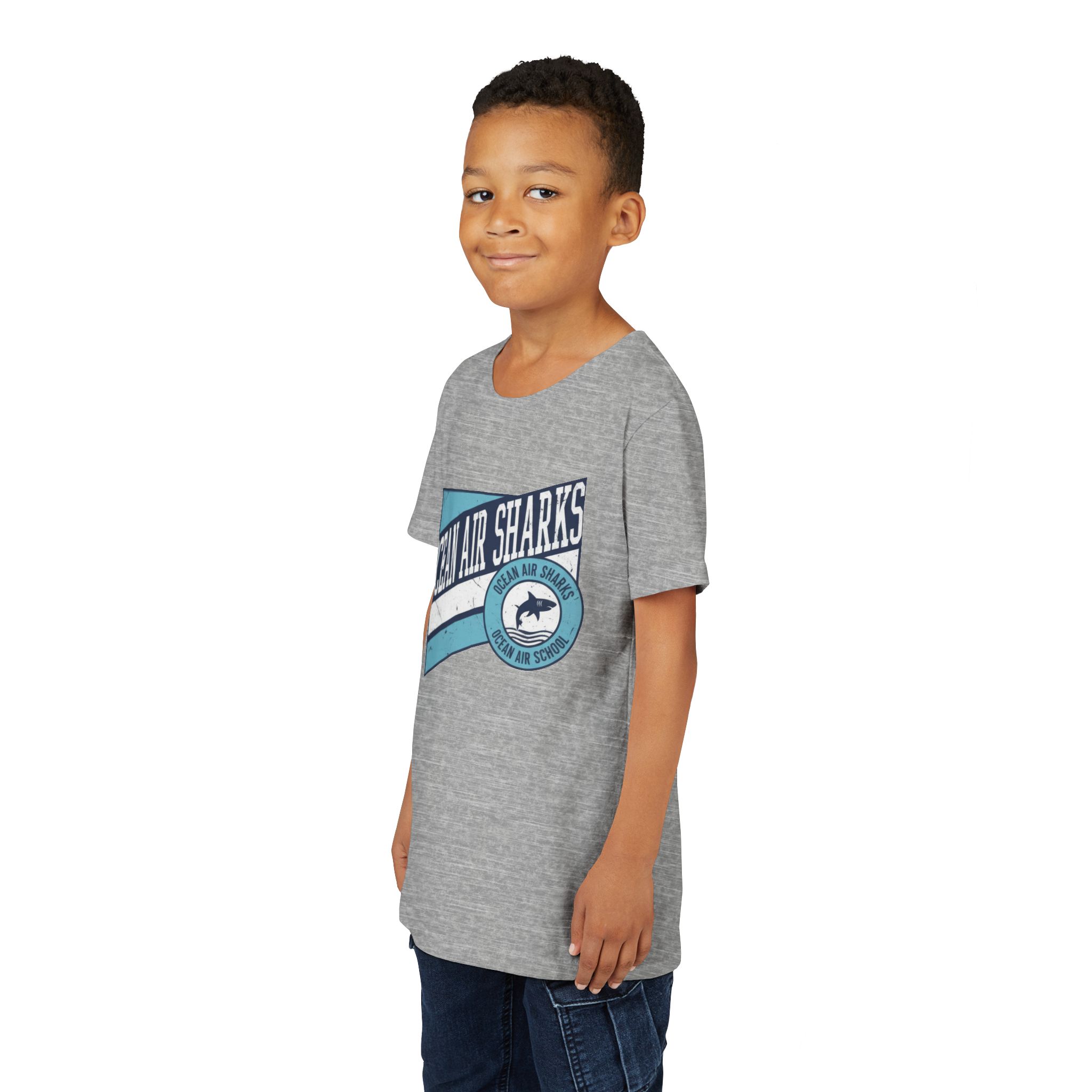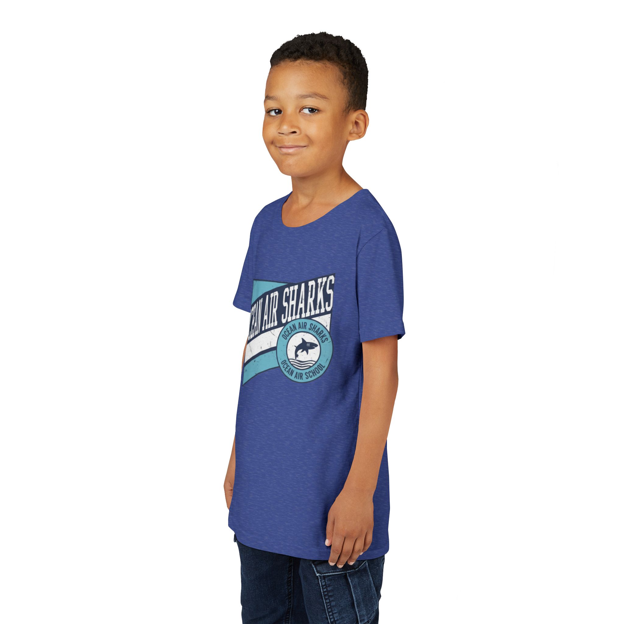 Bring bold school pride and everyday comfort together with the Ocean Air Sharks Retro Banner Tee! Featuring a vintage-inspired design with our iconic shark emblem and team colors, this tee captures the fun, spirited energy of Ocean Air School.